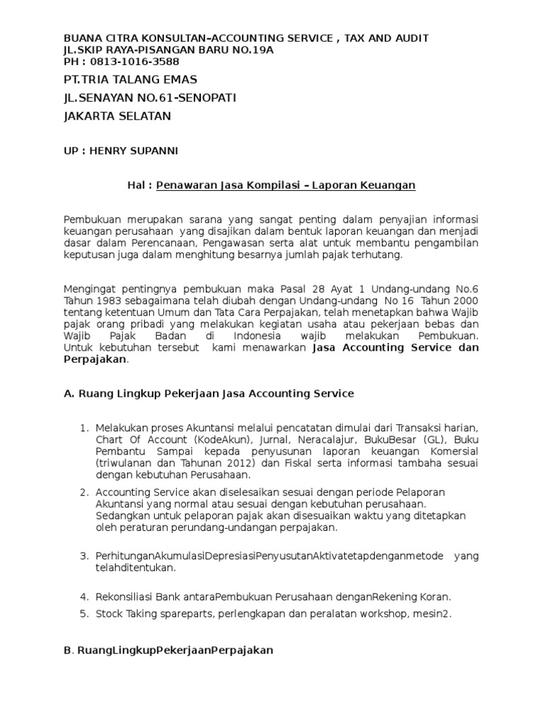 Demikian penjelasan lengkap mengenai contoh surat penawaran barang, jasa, serta cara untuk membuatnya contoh surat penawaran jasa. Gr consulting group konsultan akuntansi dan bisnis usaha kecil menengah ruko tangcit, jl.